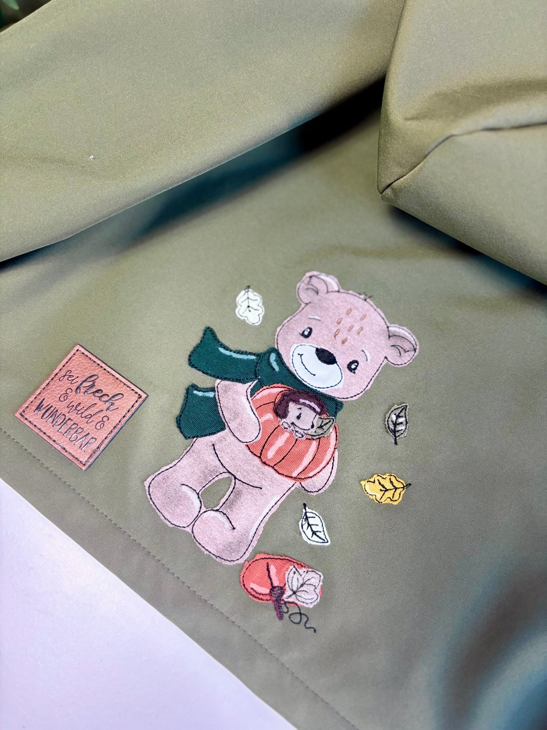 Das Motiv ist mit der Stickmaschine aufgebracht.