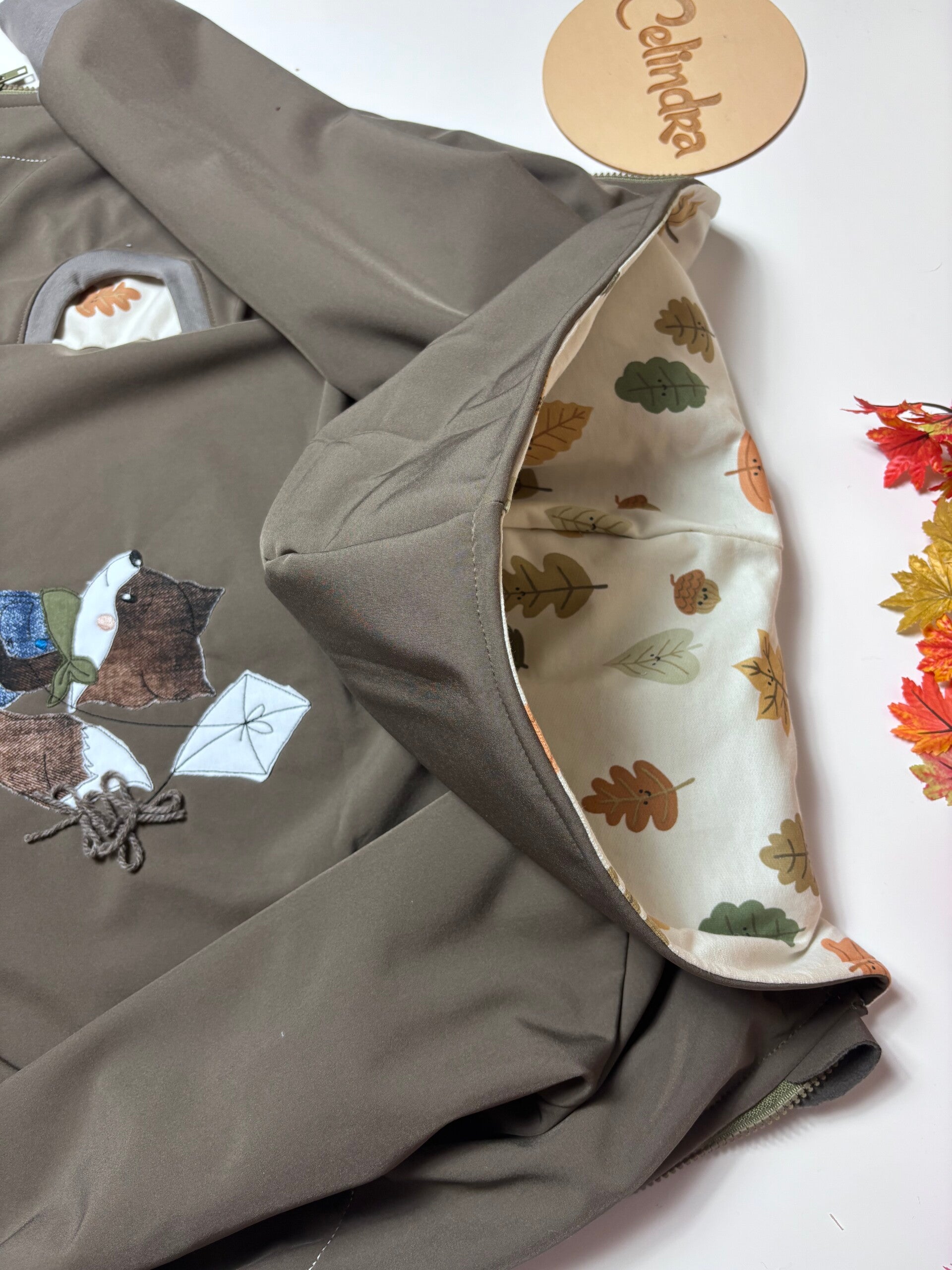 Die Jacke ist nur in der Kapuze zusätzlich gefüttert, da der Softshell eine kuschelige Fleece-Rückseite hat und wird mit Reißverschluss geöffnet.
