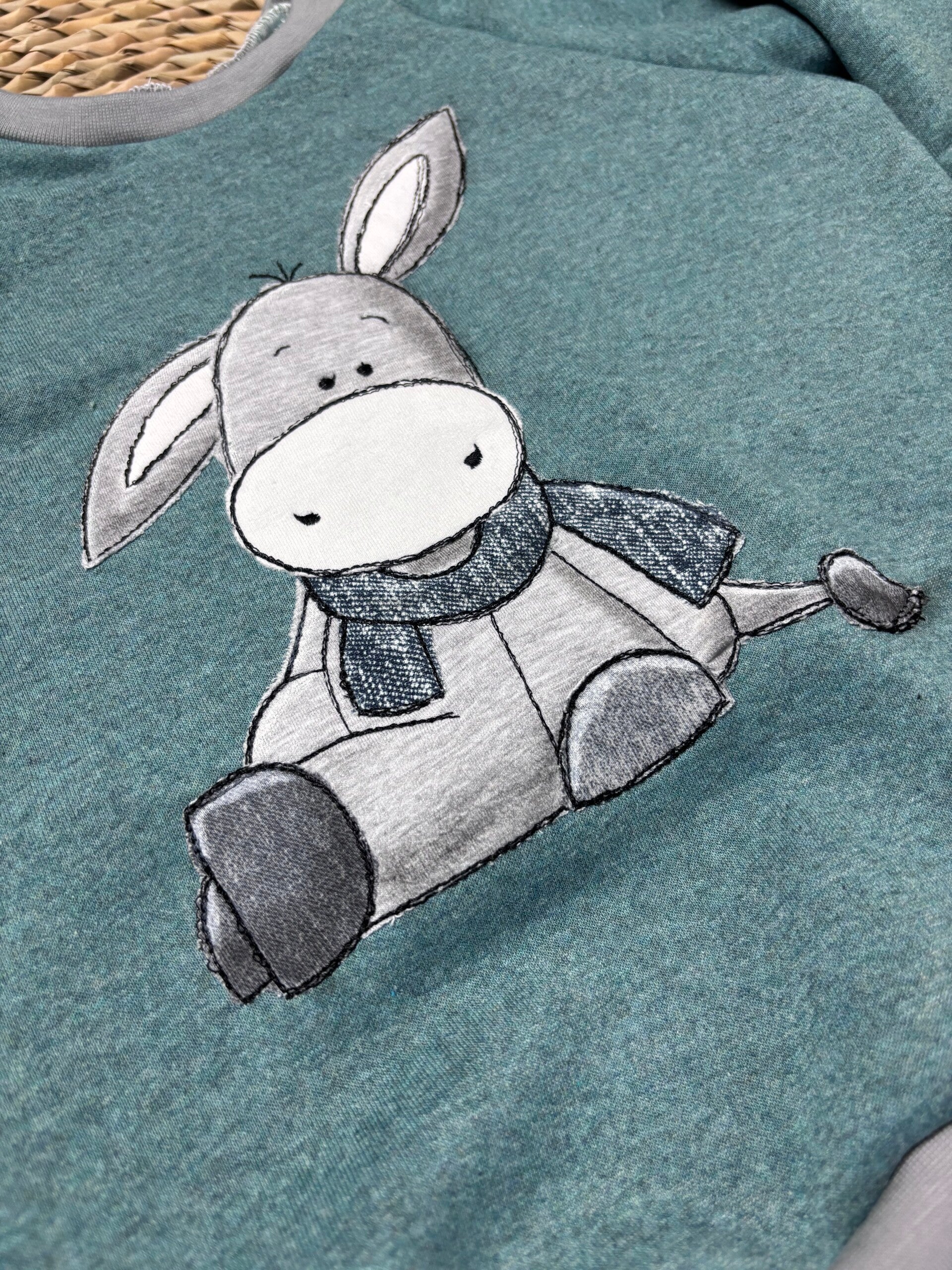 - Langarmshirt aus Kuschelsweat (80% CO / 20% PO) mit Applikation