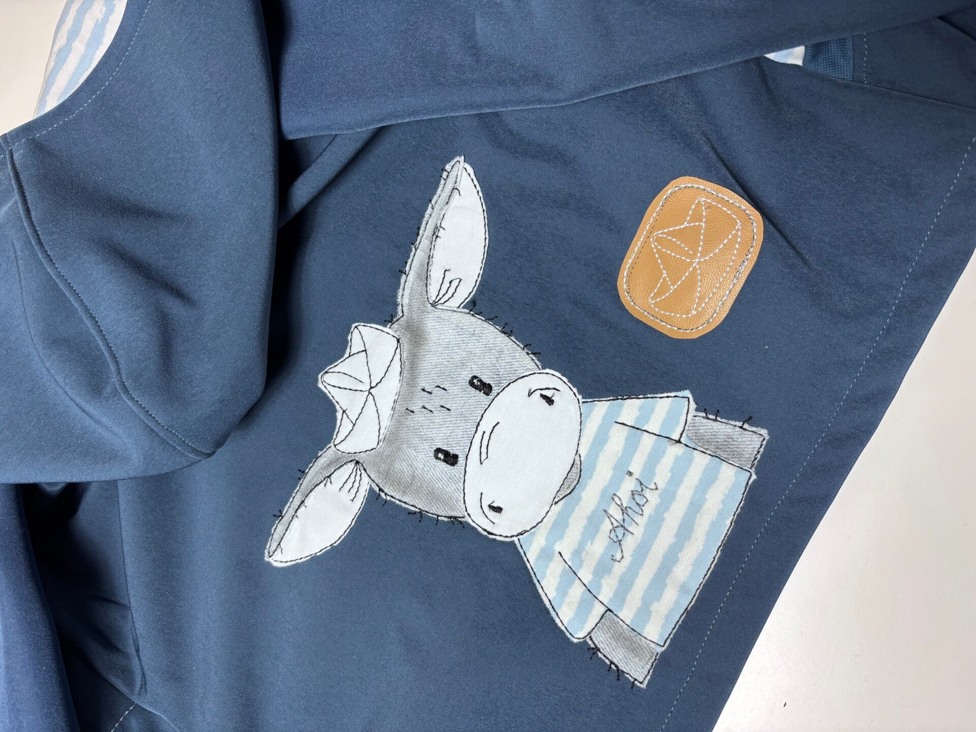 Das Motiv ist mit der Stickmaschine aufgebracht.